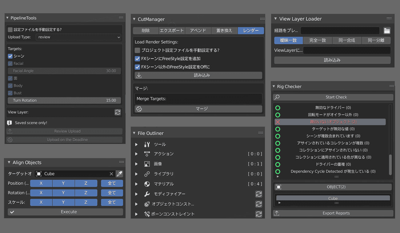 Tools:Q Common provides a tool as a single add-on that streamlines each section, such as modeling, animation, and rigging.